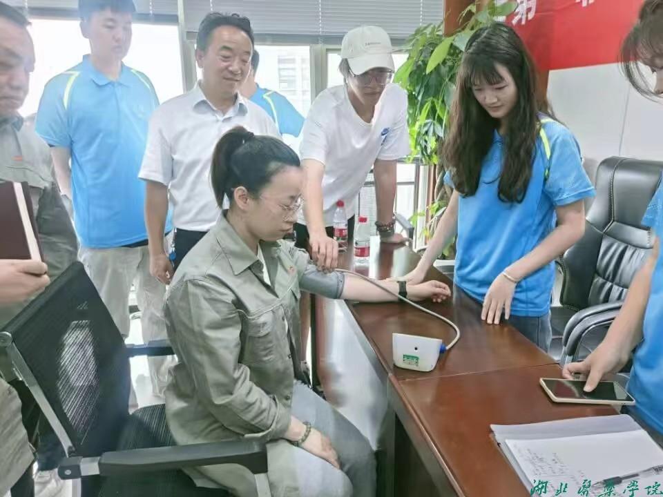 本网讯(通讯员 王小燕 邱子奕)近日,第一临床学院“悠悠红环,熠熠湖堰”暑期社会实践队在武当国际酒店为国能长源十堰水电开发有限公司的员工们开展“暑热无忧,卒中远离”志愿活动。
