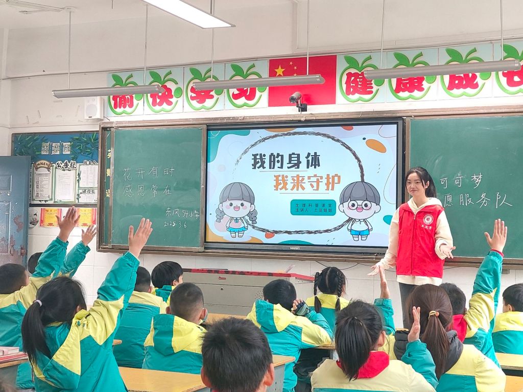 本网讯(通讯员 张洁 张慧丽)3月6日下午,第一临床学院可可梦志愿服务队走进五四小学,为300余名学生带来“花开有时,感恩常在”主题教育活动,活动根据学生年龄特点分两个会场,通过互动科普帮助青少年建立正确的性别认知与感恩意识。