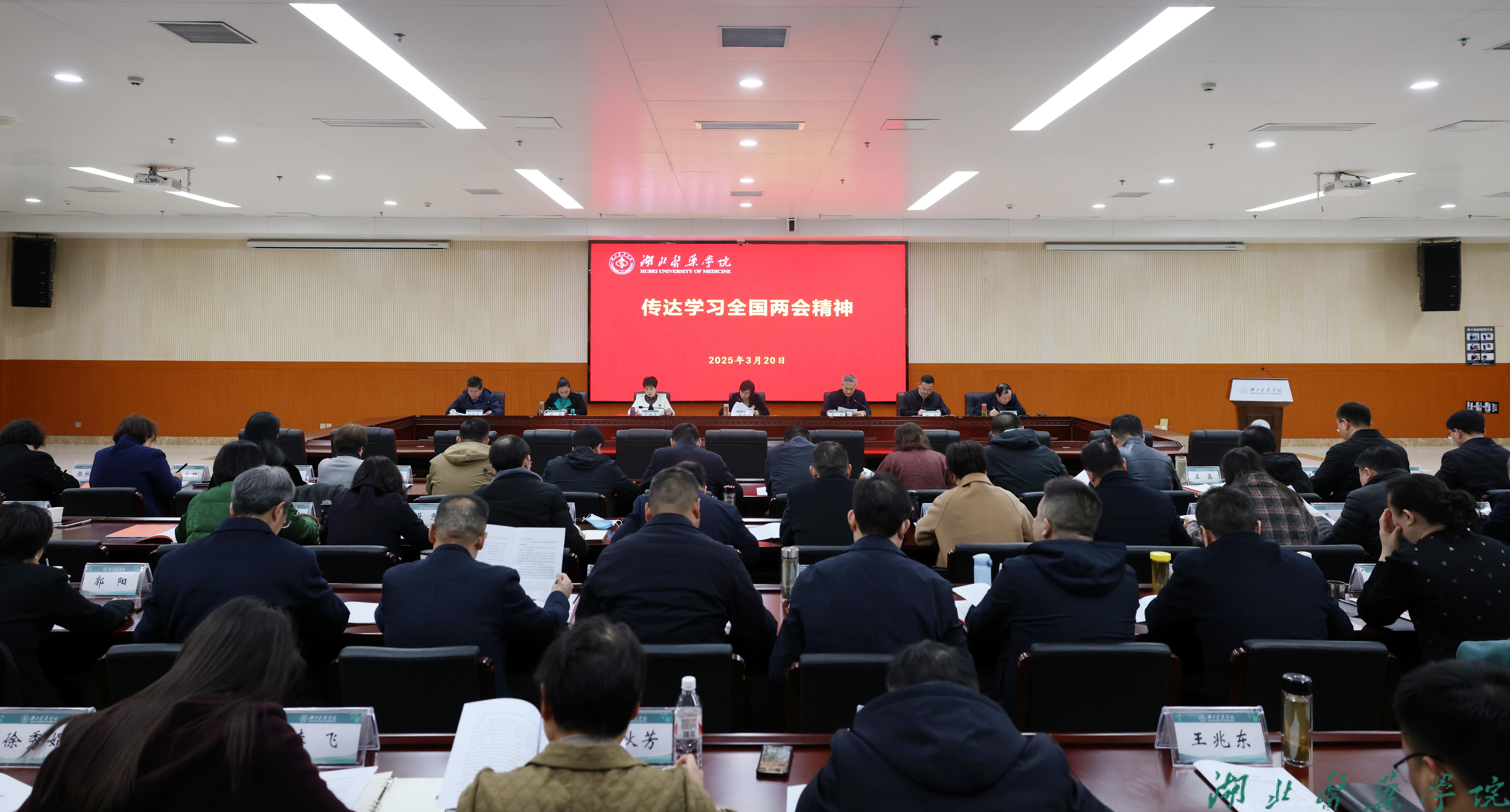 郑丹凤就学习宣传贯彻2025年全国两会精神提出要求。要认真学习领会,强化思想认识。全校上下要把学习宣传贯彻全国两会精神特别是习近平总书记重要讲话精神作为当前一项重要政治任务,与学习贯彻习近平新时代中国特色社会主义思想和党的二十大、二十届二中、三中全会精神紧密结合,深学细悟、对标对表,入脑入心入行。要落实决策部署,激发改革活力。聚焦两会和全省教育大会精神,深刻把握教育、科技、人才在中国式现代化进程中的战略地位、战略作用和战略机遇,强化教育对科技和人才的支撑作用,统筹推进教育科技人才体制机制一体改革,奋力答好“强国建设、湖医药何为”的时代答卷。要坚持担当作为,推进事业发展。深入学习贯彻习近平总书记重要讲话精神和全国两会精神,深刻领会省委实施“七大战略”、提升“七个能力”、强化“五个意识”的新部署、新要求,市委“三个提高”的工作安排,以更高站位、更高标准、更高要求进一步找准服务支点建设的关键点、着力点、突破点,立足医药特色,彰显行业优势,奋力抓好“更名”“申博”、十四五规划落实等重点工作,主动作为、真抓实干,持续提升能力作风,以高质量发展助推高水平支点建设。(审稿 陈建龙)