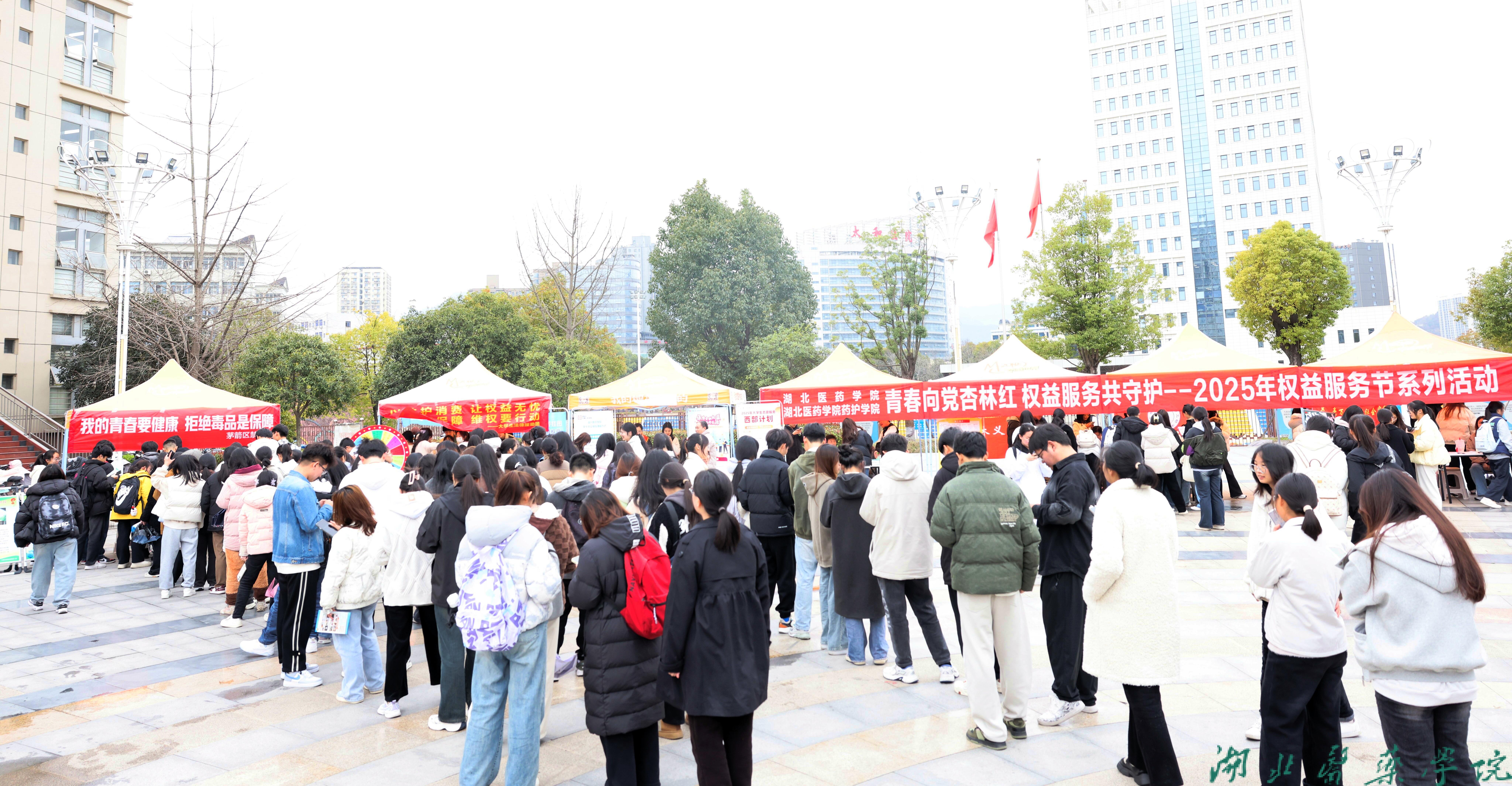 本网讯(通讯员 张桢英 倪乐祺 李琴 廖欢)为进一步提高权益服务水平,提升青年大学生的权益保护意识和能力,2025年3月14日,湖北医药学院第八届大学生权益保护节在文明广场举行。党委常委、统战部部长谭艳到场参加,校团委、学工部等部门负责人,茅箭区分局禁毒大队、大学生法律援助团等单位代表与近千名师生共同参加了此次活动。