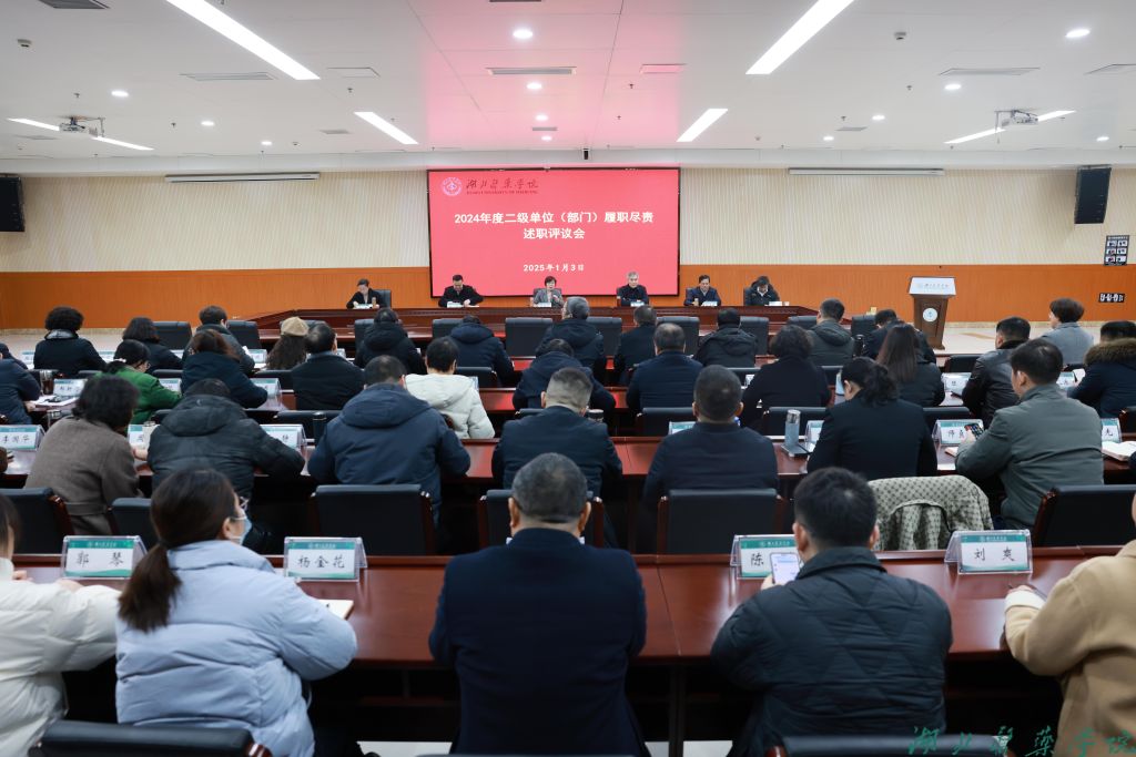 本网讯(文/孙敬龙 图/黄松鹤)1月3日上午,我校举行2024年度二级单位(部门)履职尽责述职测评会。全体在家校领导、学校编制处级干部、各二级单位职工代表参加会议。会议由党委书记郑丹凤主持。