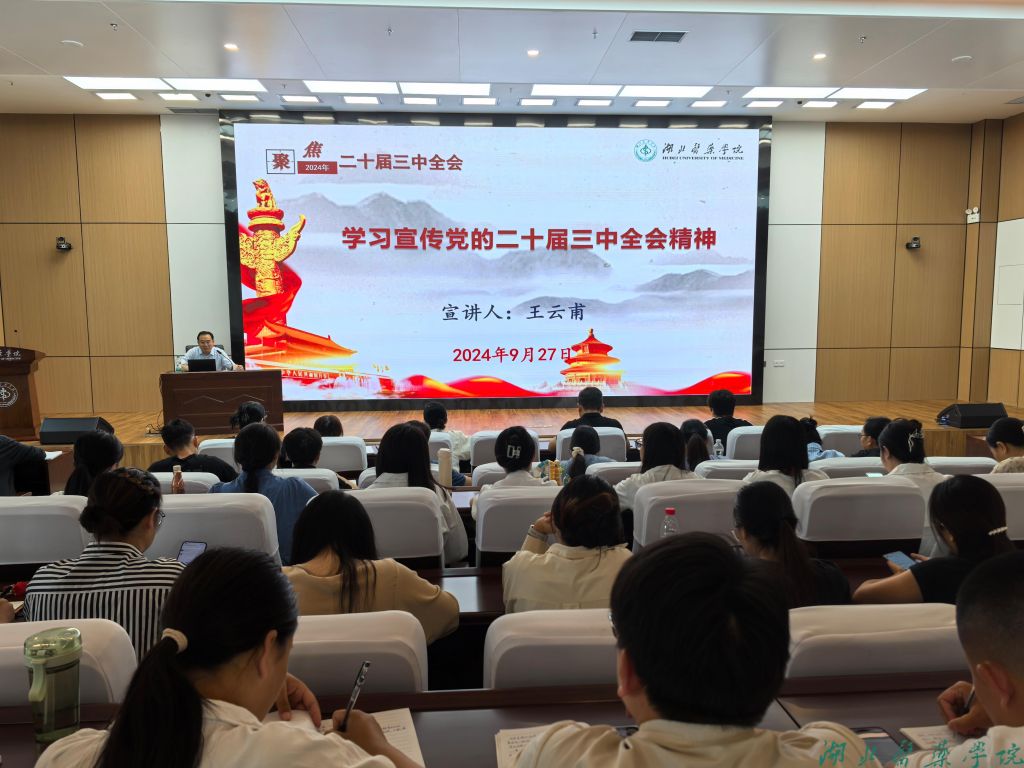 本网讯(通讯员 丁陵溪)9月27日下午,党委副书记、校长王云甫在公共卫生与健康大楼二楼学术报告厅开展学习宣传党的二十届三中全会精神专题宣讲会。机关党委第二党支部、护理学院党委和药护学院党委全体党员参与学习。
