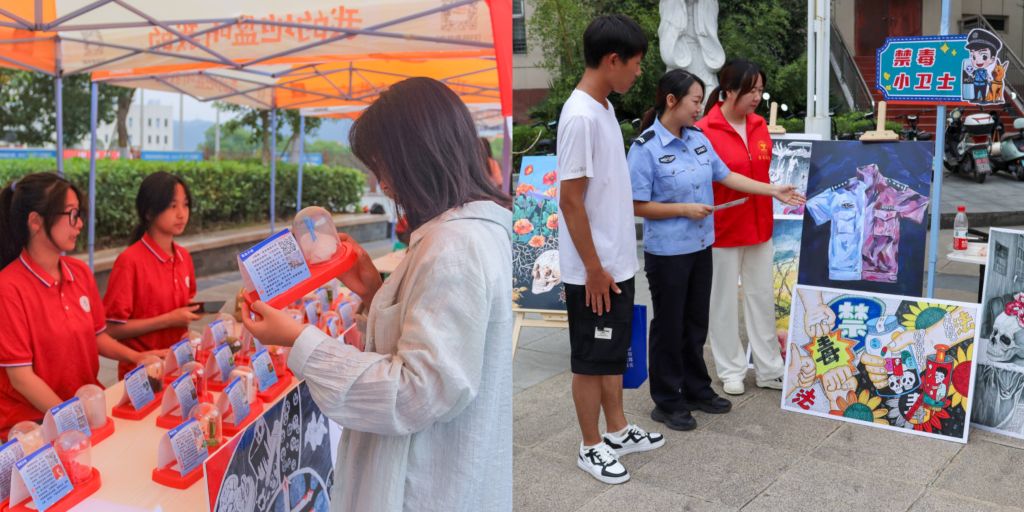 沉浸式禁毒科普教育。活动现场的禁毒模型参观区和禁毒手绘展成为焦点。栩栩如生的毒品模型陈列,吸引众多师生目光。禁毒志愿者的现场讲解,让同学们近距离直观了解了各类毒品的形态特征及相关知识。一幅幅手绘作品以其独特的艺术表现手法,让同学们进一步加深对毒品危害的认识。