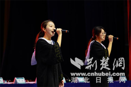 典礼伊始,暖场歌曲串烧《青春满怀 高歌起航》点燃全场师生热情。毕业生代表倾情演唱《纪念》《不要慌太阳下山有月光》《不说再见》《第一天》《青春探路者》等经典曲目,悠扬的旋律和背景屏同步播放的校园生活影像,唤起了大家对大学生活的不舍与留恋。毕业班辅导员合唱《光阴的故事》,并送出真挚而温情的祝福,让现场毕业生热泪盈眶,掌声不断。