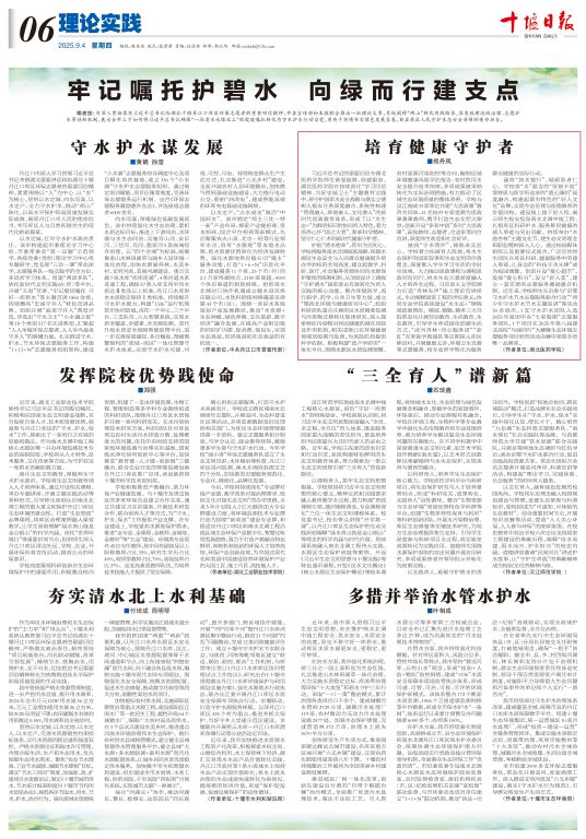 习近平总书记的重要回信令湖北医药学院师生备受鼓舞,倍感振奋。湖北医药学院在持续深化“学习回信精神、当好忠诚卫士”主题教育实践中,将守护国家水安全战略与落实立德树人根本任务深度融合,系统性构建“管理融入、阵地嵌入、文化渗入”的新时代思政教育体系,形成了以“水生态 ”为鲜明标识的协同育人特色,着力培养心怀“国之大者”、秉承科学精神、坚守仁心仁术的新时代健康守护者。
