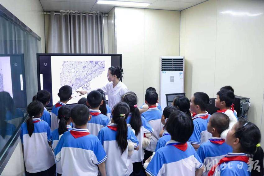 下午的行程聚焦医学与科学探索。在“雏鹰计划”社会实践队志愿者们的带领下,孩子们参观了湖北医药学院校史馆、好人馆和名人馆,通过一张张泛黄的照片、一个个感人事迹,感受医学工作者“敬佑生命、救死扶伤”的职业精神。