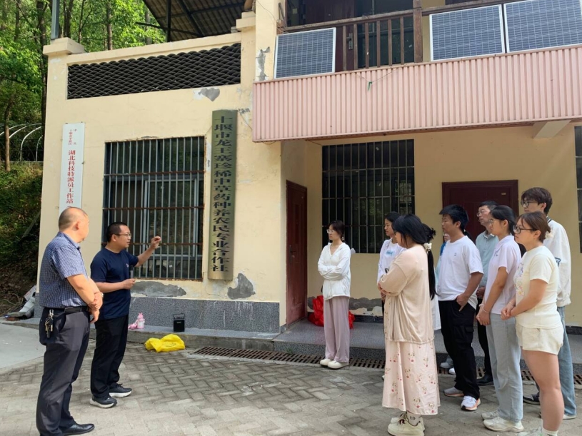 此次思政实践教学中,湖北医药学院思政课教师王刚为同学们讲解国家乡村振兴战略、国家“三农”政策,深入阐释中医药文化在中华优秀传统文化中的重要意义。湖北省科技特派员、湖北医药学院张勇洪教授向大家讲授了中药植物的基础知识、中药材的药用价值、当前中药资源保护与产业发展现状,并现场展示了七叶一枝花等珍稀药材的育苗和种植过程。他还结合青霉素的发现历史,鼓励学生从自然中汲取智慧,树立科研志向,深入思考“如何将传统中医药文化融入现代社会发展”。同学们还在现场详细了解了园圃管理、基地运营,以及带动农户增收致富的具体情况。