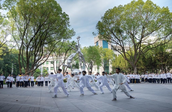 湖北医药学院留学生带来的太极拳与功夫双节棍表演成为亮点。留学生们一招一式尽显中华武术神韵,刚柔并济的演绎让现场师生感受到传统文化的国际传播力。