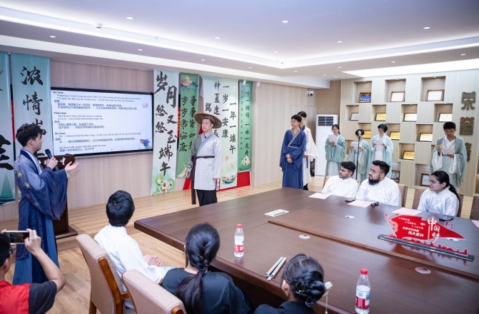 作为活动发起方与组织者,湖北医药学院人文社会科学学院外语课部充分发挥学科优势,将语言教学与文化传播深度融合。外语课部负责人傅珏老师介绍:“此次活动是‘用外语讲好中国故事’的教学实践。从指导学生用英语诠释端午文化,到引导留学生通过武术表演实现文化转译,本质上是培养‘既有中国心、又有世界眼’的复合型人才。”两校后续将围绕武当文化、汉水文明等地域特色,开发大中小学贯通的外语课程思政校本资源,推动文化交流常态化。