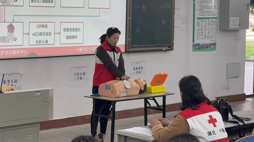 截至目前,累计培训超2000人次,2000余名学员经红十字会考核认证通过。依托标准化流程与复盘机制,培训合格率达到100%。为进一步深化急救培训成果,湖北医药学院从考核通过的人群中,经过择优选拔、严格考核与强化培训,精心抽选了112名学员,与直属附属太和医院心肺康复中心联合成立了医学生急救员助教团,深入企事业单位、基层社区开展急救培训。这一举措不仅为学员们提供了更高层次的学习与实践平台,也助力急救知识更广泛地传播与应用,让“救”在身边的理念深入人心。
