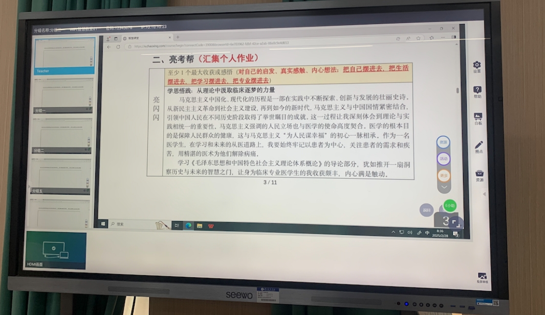 《毛泽东思想和中国特色社会主义理论体系概论》课程融合了其他思政课程的内容,并拓宽了人文社科知识面,只有这样才能真正体现出本课程的教学目的和意义。在卓越医师班的课堂上,教师和学生并不拘泥于课本知识。他们将眼光投向更宽广的课外知识,并在恰当时候补充课外哲学知识、“四史”知识等,构建更加宏伟的知识框架体系。