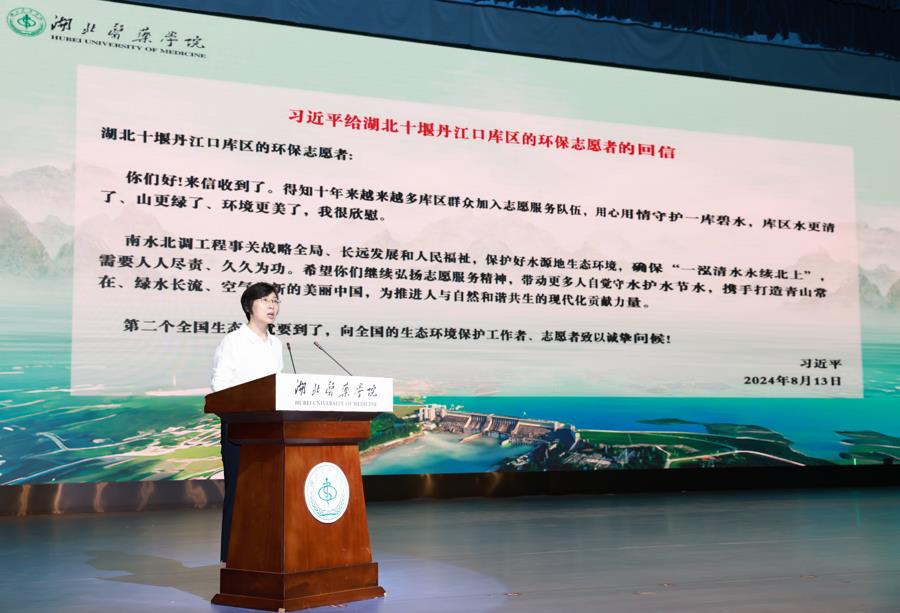 8月13日,习近平总书记给湖北十堰丹江口库区的环保志愿者回信,激励社会各界积极投身生态文明。湖北医药学院这堂大思政课聚焦此主题,用“守望•碧水”“守望•发展”“守望•故乡”“守望•中国”四幕共八个故事,讲述了南水北调中线工程通水10周年来,十堰、北京等地人民守护绿水青山、护好一库净水,将大爱融入一泓清水的动人篇章。