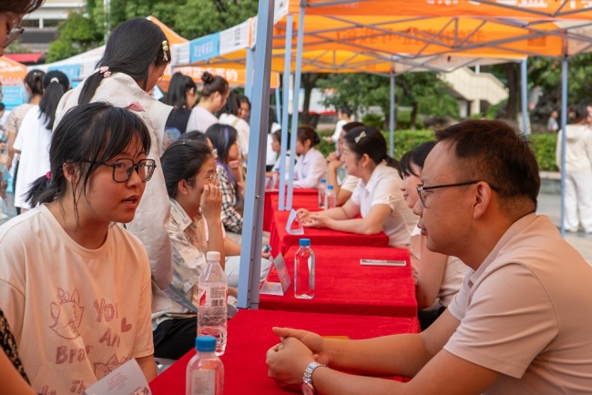 “气场体现职业水平。”“你需要多走进科室看看。”此次活动还邀请了医生、公务员、护士、教师等在岗专业人士提供咨询,学生蜂拥而上,求解心中疑惑。每个关卡前都人潮涌动、门庭若市。2021级临床医学专业的一名同学纠结考研选择专硕还是学硕,学校直属附属太和医院的医生耐心助她区分心之所向。2022级康复治疗专业的张同学感慨:“和老师交流后,我获益良多,明确了自己的发展方向。”