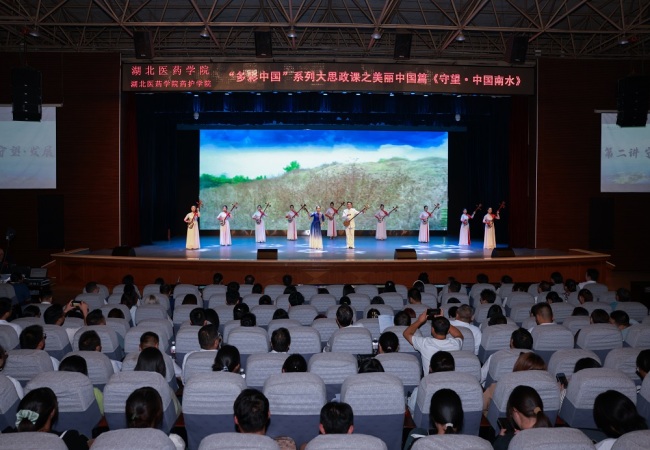 课堂上,湖北医药学院党委书记郑丹凤以“湖北医药学院的使命与担当”主题为导入,娓娓拉开这堂大思政课的序幕。来自十堰、北京等地各单位、各行业的10位主讲人深情讲述那些跨越千山万水的深情与坚守。湖北医药学院张垚博士毕业后舍却大城市高薪待遇,毅然回乡带领团队守水护水;京堰两地志愿者携手开展环保志愿服务活动;丹江口以水为媒、因水质之变而兴,共绘致富蓝图;中国工程院院士李玉“吃水不忘挖井人”,指导十堰培育优良食用菌品种;库区移民舍小家顾大家毅然搬迁,在党的关心帮扶下实现安居乐业;南水北调工程历史及“南水北调精神”;首都人民感谢库区、爱水节水共护前行……在场师生沉浸在一个又一个鲜活的故事中,现场不时响起雷鸣般的掌声。