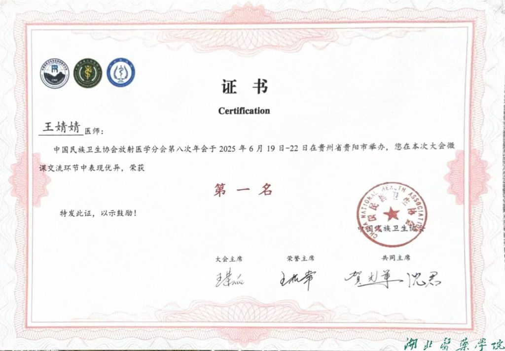 本次大赛以“民族的影像,世界的影像”为主题,旨在提升医学影像青年医师教学水平,打造高水平师资队伍。大赛吸引了来自全国各地的100名青年影像医师积极参与,经过大会专家委员会的严格评审与筛选,王婧婧教师凭借其出色的教学能力,成功跻身全国15强。总决赛现场,她以完整巧妙的课程设计、逻辑清晰、生动流畅的授课过程,充分展示了扎实的专业功底和卓越的教学风采,赢得了现场评委及与会同仁的高度认可。最终不负众望,摘得本次全国赛的桂冠。