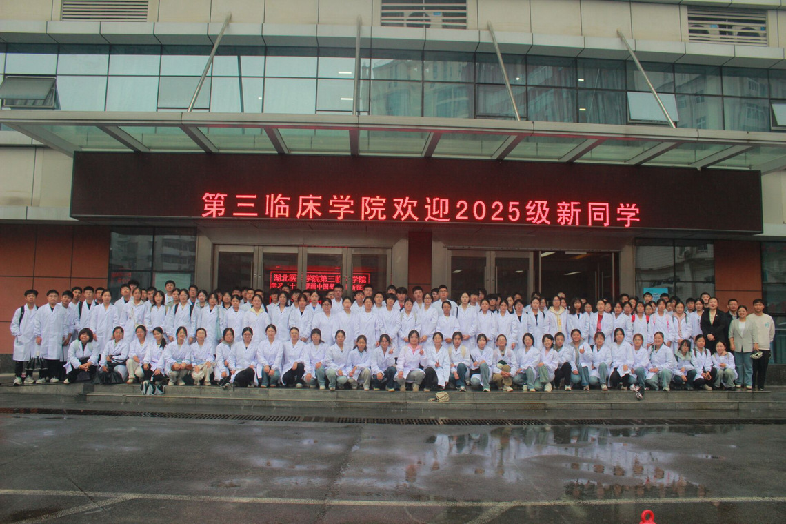 早上九点,伴随着绵绵细雨,新生在直属附属人民医院校区第三临床学院教学楼前集合。桂程君对118名新生的到来表示欢迎。她希望同学们通过参观三年后临床阶段的学习校区,更好地熟悉三院,在第一次参观时留下合影,对比五年后的毕业合影,见证从“萌新”到“白衣天使”的蜕变。