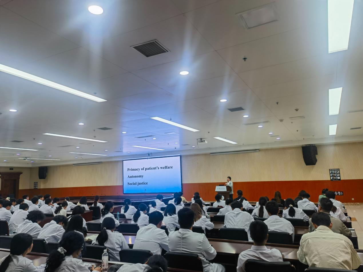 院长王家宁以《理解医学,做合格医生》为题给新生讲授专业思想教育第一课。王院长围绕何为医学、医生应该具备何种素养、如何成为合格医生三个核心主题,系统分析医学专业的内涵与价值。激励同学们将个人理想融入国家医学事业建设,以坚定的信念走好从医之路。
