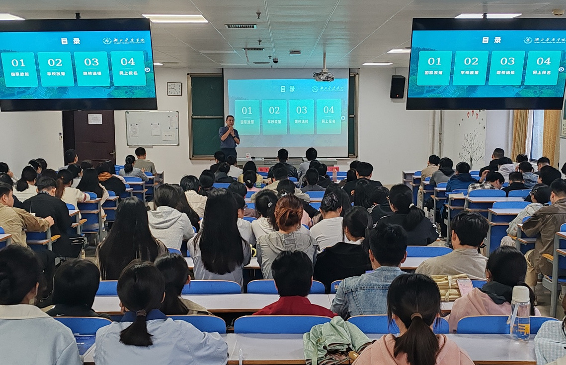 李明以《研途有我,研考那些事儿》为题作专题报告。他围绕“招生规模、专业目录、报名流程、复试调剂”四条主线,系统梳理了2026年研究生招生政策的新变化;结合近五年我校报考与录取数据,深入剖析临床医学类专业竞争态势;从“信息获取、阶段规划、资料选择、心理调适”四个维度,为同学们开出“备考良方”。同时,李明特别提醒大家要善用“官方渠道”、警惕“虚假广告”,并现场演示了“研招网”最新功能模块。