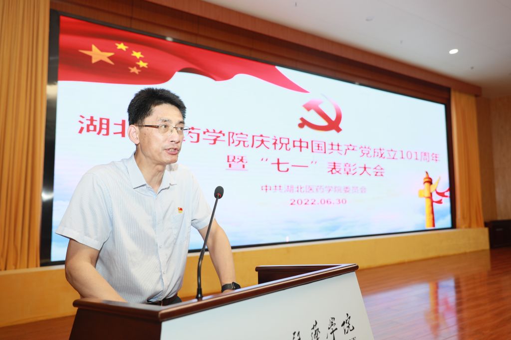 本网讯(文/鲍晓宇 图/鲍晓宇 刘成臣)6月30日下午,湖北医药学院庆祝中国共产党成立101周年暨“七一”表彰大会在科教楼学术报告厅举行,退休老领导、光荣在党50年老同志,全体校领导、全体职工党员,学生党员代表齐聚一堂,共同庆祝党的生日。大会由校党委副书记、校长李和主持。