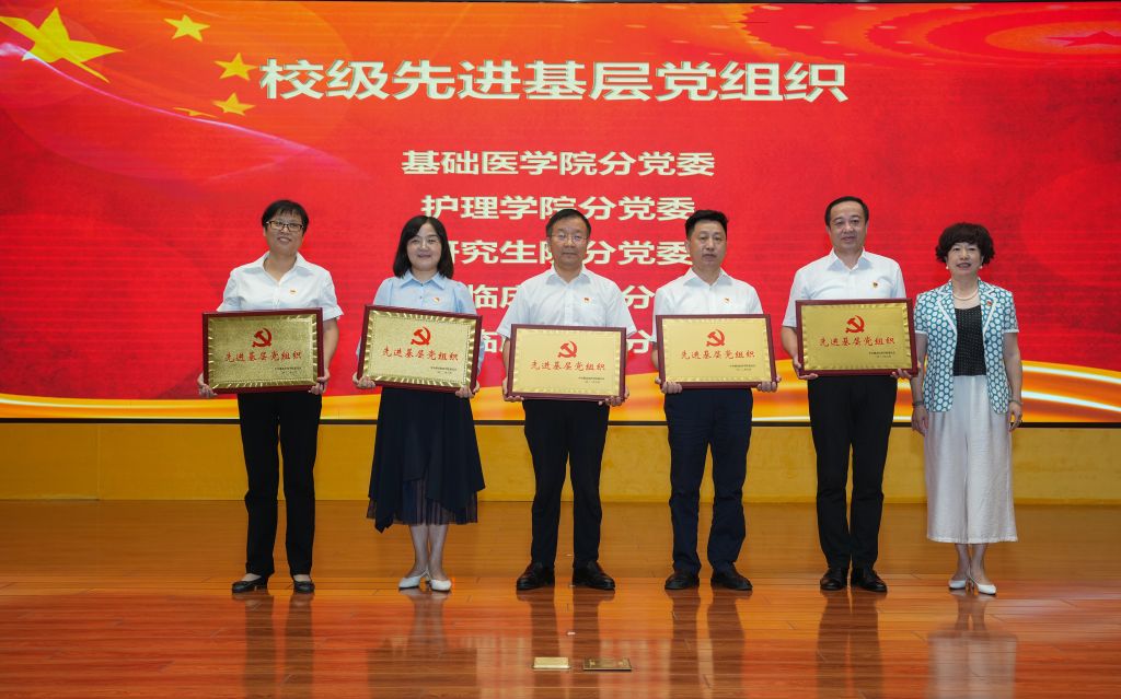 党委常委、副院长李云霞为5个获得“先进基层党组织”荣誉称号的分党委颁奖。