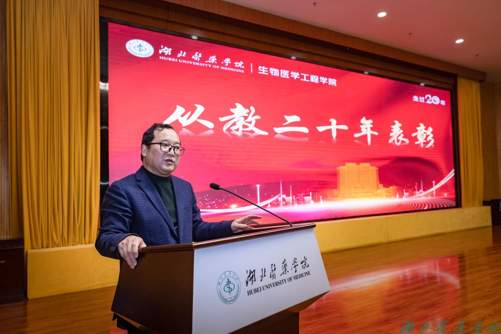 从教二十年教师表彰环节,涂汉军讲述医学检验系走过的这二十载光阴。他表示,检验专业从最初的艰难起步到如今的成绩斐然,离不开每一位师生的努力与奉献,站在医学检验发展的新起点,医学检验与人工智能的融合势在必行,医工结合更是关键路径。持续推进学科交叉创新,为医学检验领域注入新活力,推动教育质量与行业发展迈向新高度。