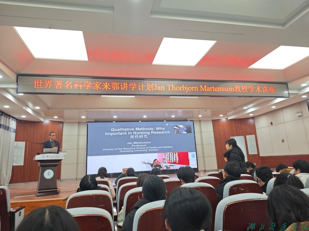 随后,martensson教授为我校师生做题为“qualitative methods:why important in nursing research”的精彩讲座。martensson教授围绕质性研究的特点、对研究人员的要求,质性研究常用的研究方法进行深入讲解,结合丰富的研究案例及自身研究经验,详细讲授质性研究方法在科研中的应用与实施。在交流互动环节中,martensson教授针对与会师生关于科学研究中遇到的问题逐一进行悉心指导和耐心答疑。