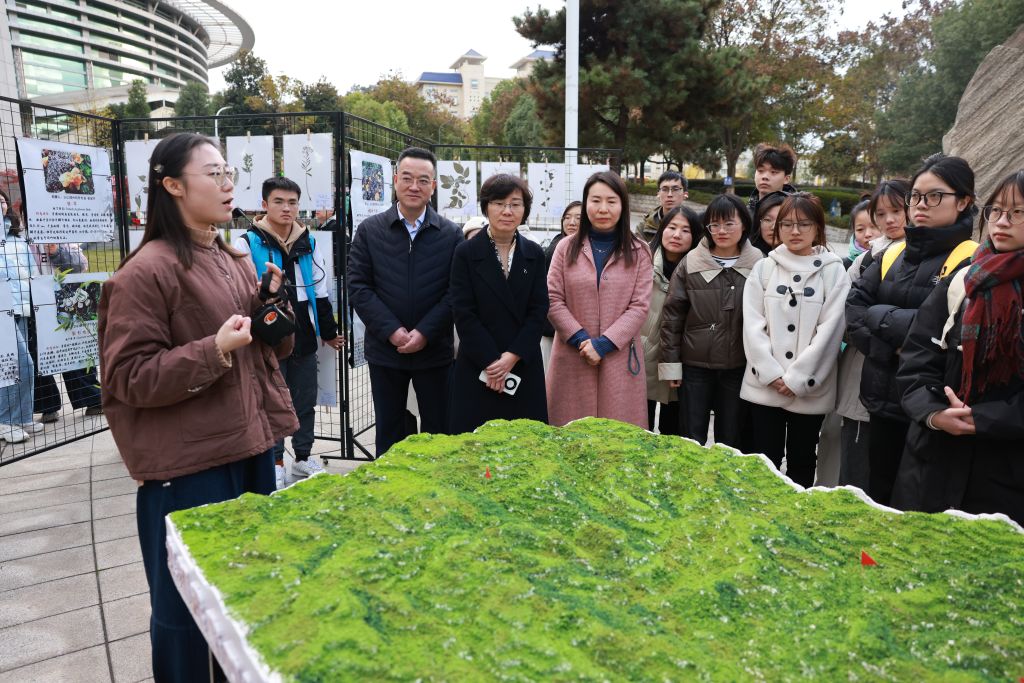 郑丹凤鼓励青年教师做好第一课堂与第二课堂的有机结合,把理论与实践相融合,推进学科的全面发展,为建设新时代大美中国做贡献。她希望湖医药师生将传承写在脚下,将旗帜传递下去,为医药事业的发展多做贡献。讲解结束后,师生自行参观。郑丹凤、徐荣书记与实践队队员亲切交流,倾听考察过程中的有趣故事,与当地药农交流的深刻感受以及标本制作过程中的困难与收获。本次实践成果展将于户外展出至周末,后期将转移至室内进行较长期的展示。