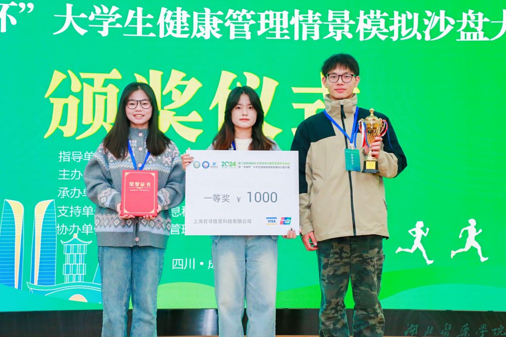 本网讯(通讯员 谭永海)11月16日至17日,由中国老年医学学会院校教育分会主办、成都医学院承办的第三届“寻康杯”全国大学生健康管理情景模拟沙盘大赛在四川成都举行。我校2022级健康服务与管理专业学生刘智康、黄坤瑶、张莎莎3位同学组成的“武当医梦队”,在黄梦思、谭永海两位老师的指导下,团结协作、沉着应赛,以优异的成绩荣获全国一等奖。大赛期间,同步举行了全国健康服务与管理本科教育发展学术论坛和全国健康服务与管理专业本科生优秀毕业论文评选活动,我校2024届健康服务与管理专业毕业生熊佳同学的《社会支持、睡眠质量对大学生亚健康的影响研究》获优秀论文二等奖,钟振原同学的《大学生饮食行为及其影响因素调查分析-以湖北省十堰市为例》获优秀论文三等奖。