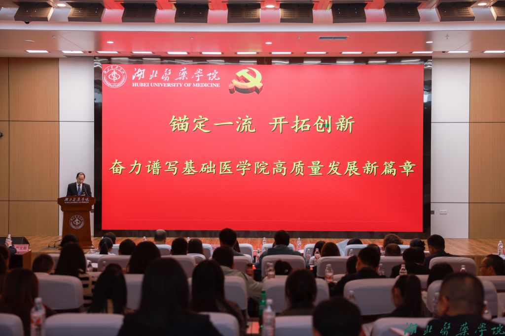 本网讯(文/刘小情 图/冯彦玮)10月19日下午,中共湖北医药学院基础医学院委员会党员大会在公共卫生与健康大楼二楼学术报告厅举行。党委常委、副院长严世荣出席会议,基础医学院全体教职工党员、学生党员代表、大会特邀代表到会。