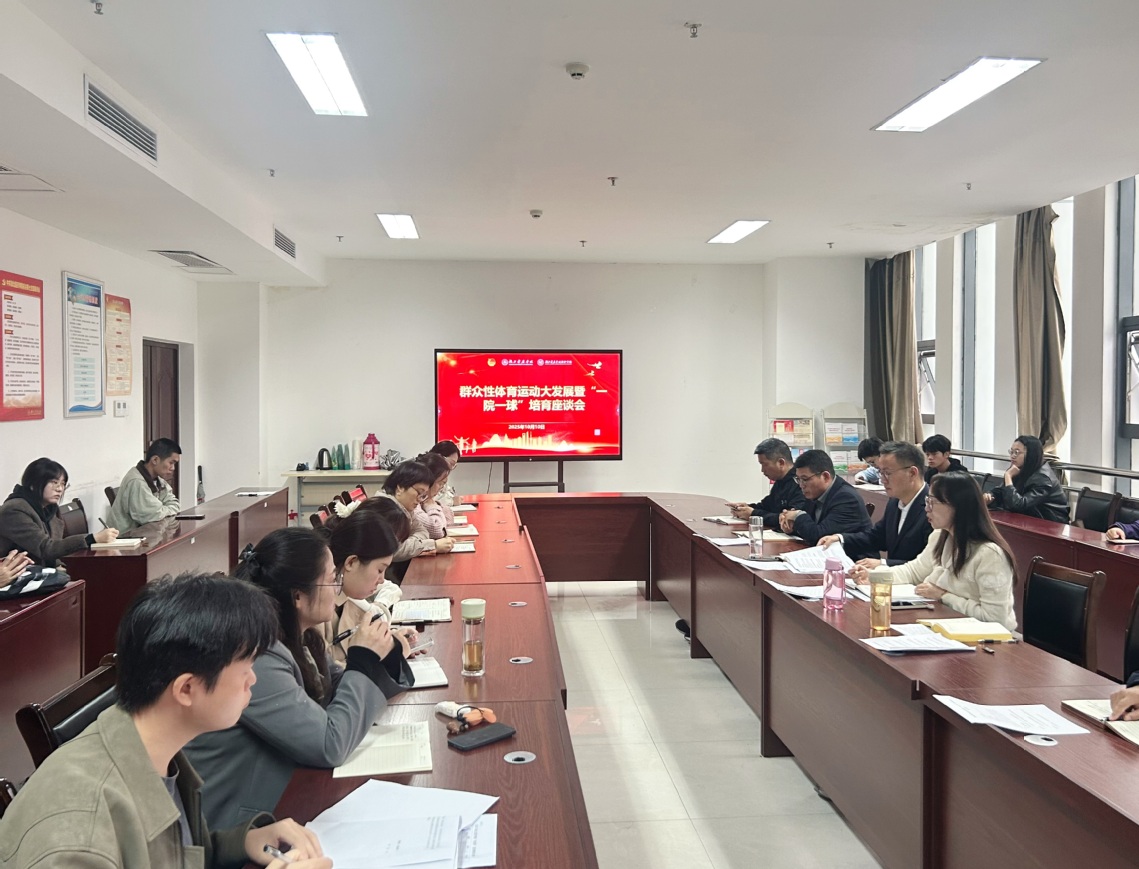 本网讯(通讯员 钟骅) 10月10日上午 ,我校群众性体育运动大发展暨 “一院一球”培育座谈会在科教楼513会议室召开。校党委常委、宣传部部长陈建龙出席会议,校团委、人文社会科学学院、体育课部、体育俱乐部相关领导老师、运动类学生社团师生代表、各二级学院团委书记及学生代表齐聚一堂,围绕校园体育发展重点任务展开深入交流。
