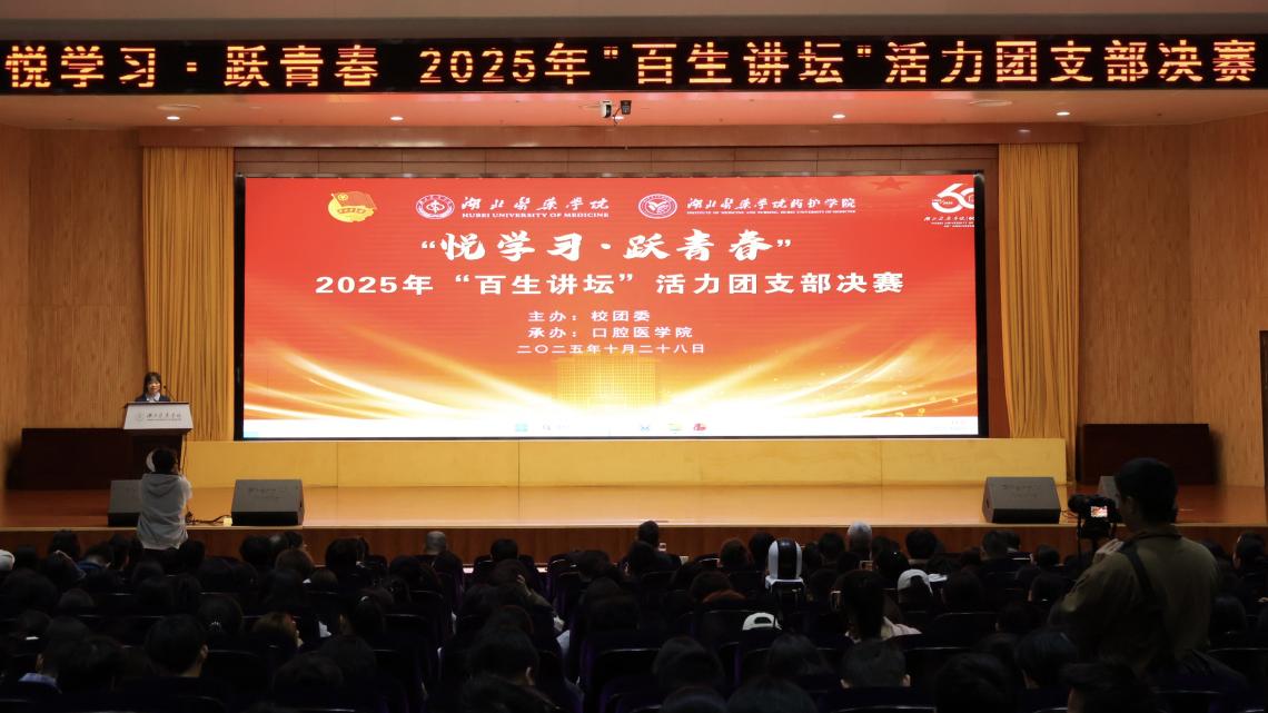 本网讯(通讯员 周思圻)10月28日下午,由校团委主办、口腔医学院承办的2025年“悦学习·跃青春——百生讲坛”活力团支部决赛,在科教楼一楼学术报告厅顺利举行。校党委常委、宣传部部长陈建龙出席活动,党委学工部、校团委负责人、各学院分管学生工作领导、全体辅导员、团校成员及各学院300余名学生代表参加活动。