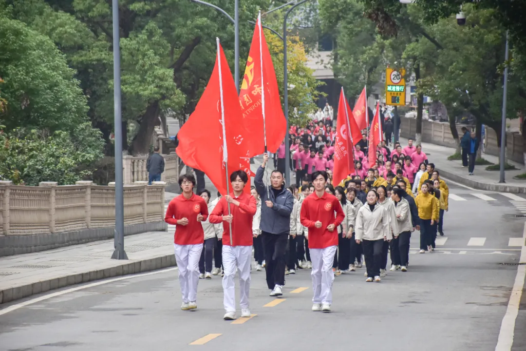 校党委书记郑丹凤宣布运动会开幕。随着一声响彻云霄的发令枪响,各方阵队伍精神抖擞,沿着环校路线奔跑前行,形成一道流动的风景线,将运动的欢乐播撒在校园的每个角落。