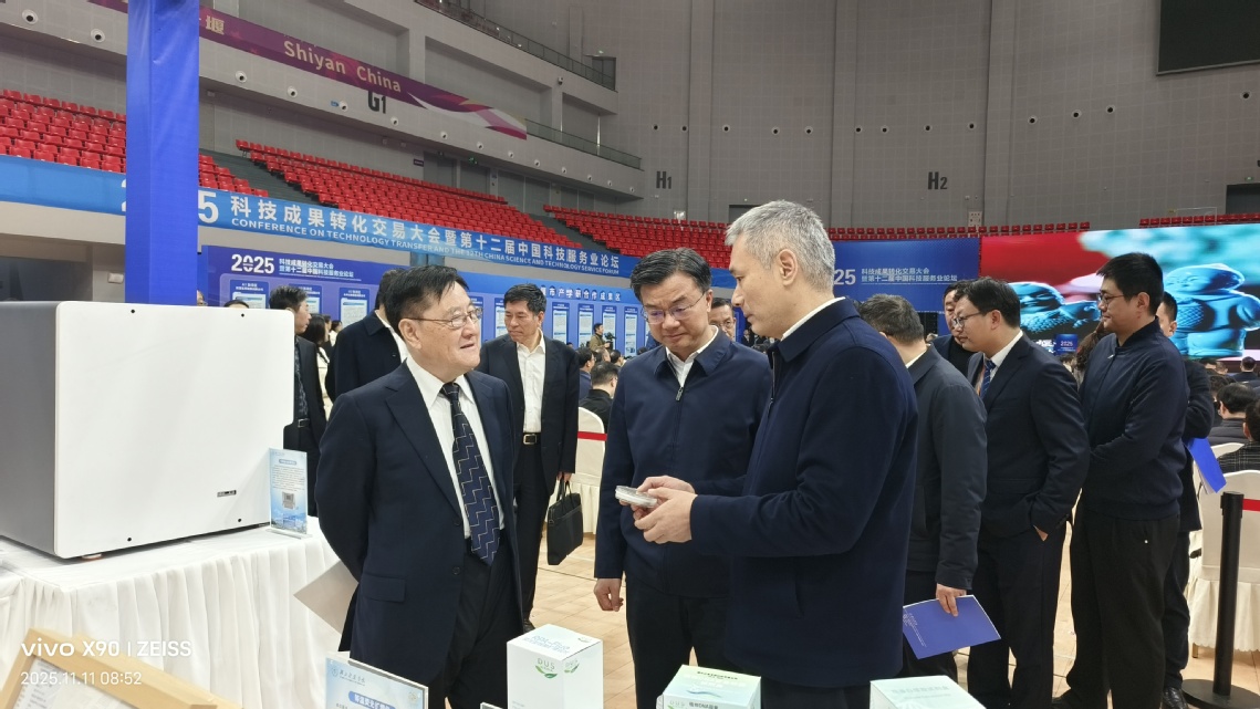 本网讯(通讯员 宋园亮)11月11日,2025中国科技成果转化交易大会暨第十二届中国科技服务业论坛在十堰奥体中心举办。大会以“科技领航向 创新赢未来”为主题,由中国技术市场协会主办,十堰产业投资集团有限公司与国家技术转移中部中心承办。来自国内外院士专家、行业领军企业、高校、科技服务机构及投融资机构的代表齐聚一堂,共商科技服务业高质量发展路径,加速科技成果从“实验室”向“生产线”的跨越转化,为区域创新驱动发展注入强劲势能。校党委副书记、校长罗杰率学校科研团队参展,集中展示科技创新与成果转化的亮眼成绩。