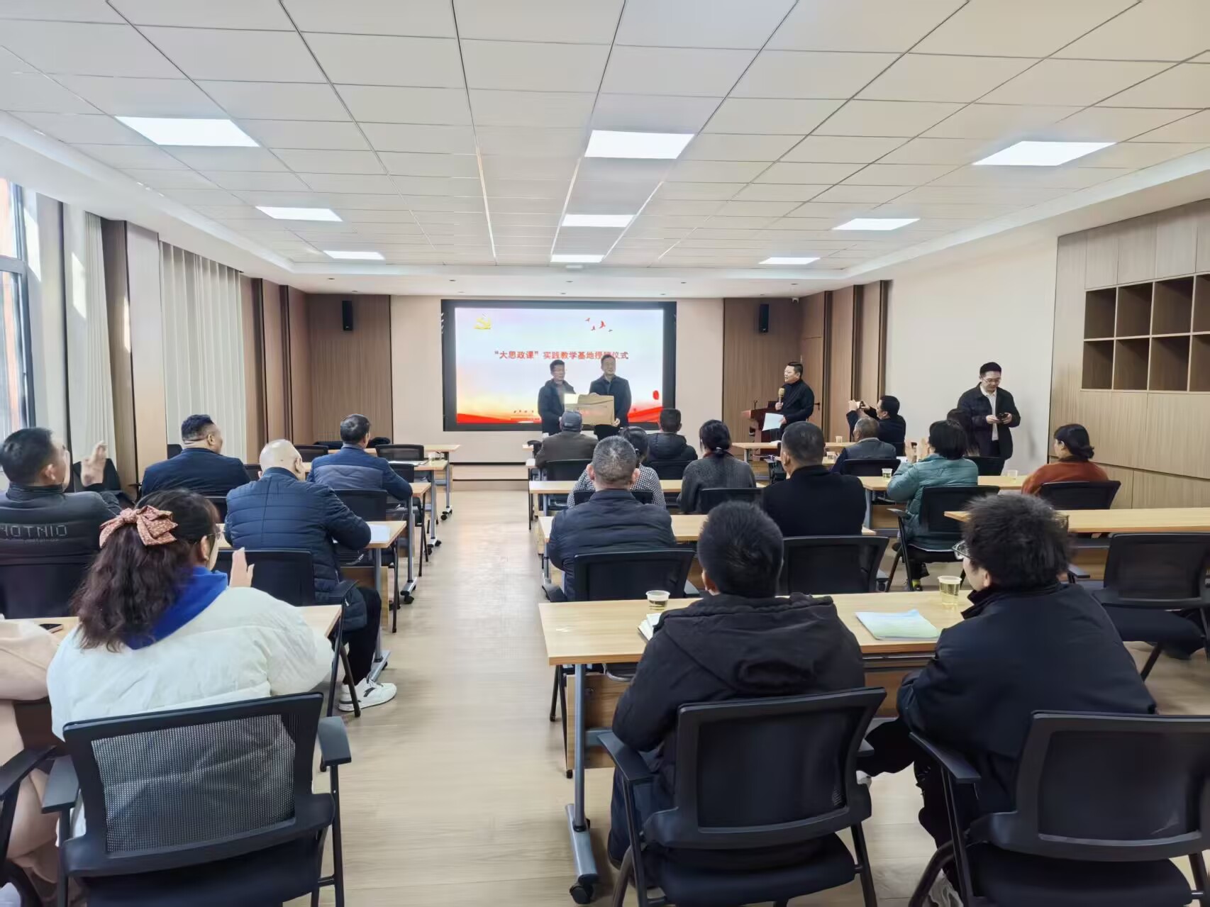 “大思政课”实践基地授牌仪式在蒿口村电商基地会议室举行。目前,我校已签约37家“大思政课”实践基地,实现了思政教育与专业特色、地方发展的深度绑定。依托这些实践基地,将行业精神、家国情怀、职业道德融入人才培养全过程,推动思政小课堂与社会大课堂融合,让青年学子在服务人民健康、助力乡村振兴的生动实践中,锤炼“大医品德”、提升专业素养,成长为担当民族复兴大任的时代新人。