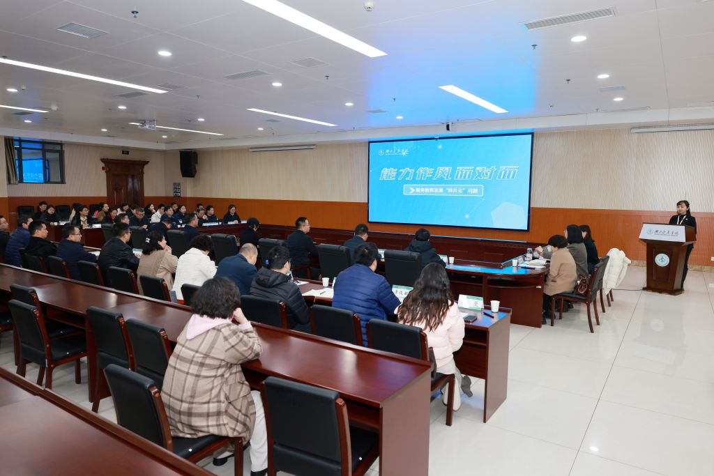 12月9日晚,湖北医药学院科教楼多功能厅内气氛紧张严肃,参会人员如临“大考”。现场正在举行的是该校“能力作风建设面对面”第二期活动。该活动借鉴“电视问政”形式,聚焦师生急难愁盼问题,以“当面问 当面答”的形式直击问题,推动其有效解决。