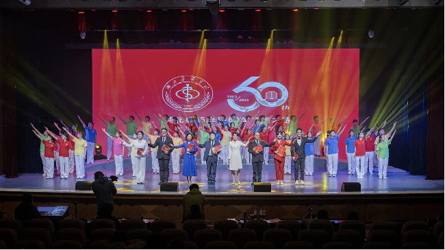 课堂还融入了舞蹈、音诗画、歌曲串烧等多元形式,生动演绎了六十年的风雨兼程与代代人的初心不改。课堂最后,全体师生齐声高唱《湖北医药学院校歌》。