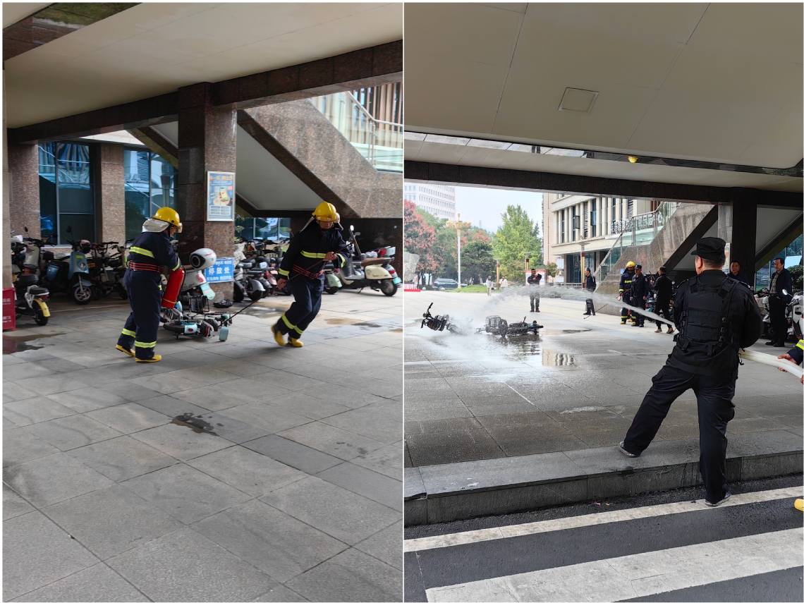 本网讯(通讯员 莫小波)为有效提升一线工作人员应对突发事件的能力,10月22日下午,在科教楼连廊处,保卫处干部带领安保人员开展了一场贴近实战的电动车起火模拟应急演练。