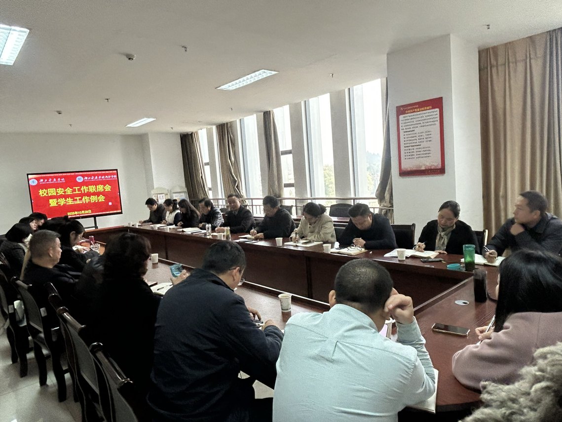 本网讯(通讯员 任容华)10月28日,我校在科教楼513会议室召开10月份校园安全工作联席会暨学生工作例会。党委常委陈建龙出席会议并讲话。