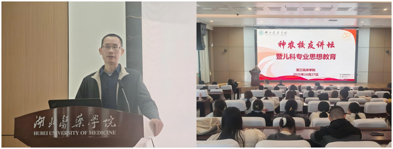 本网讯(通讯员 柳金金)在学校建校60周年来临之际,10月27日下午,第三临床学院在公卫大楼二楼报告厅召开“神农校友讲坛”暨儿科专业思想教育大会。报告会由第三临床学院2006级优秀校友席世兵博士主讲,学院儿科学专业学生参加大会,学院党委副书记李芹主持报告会。