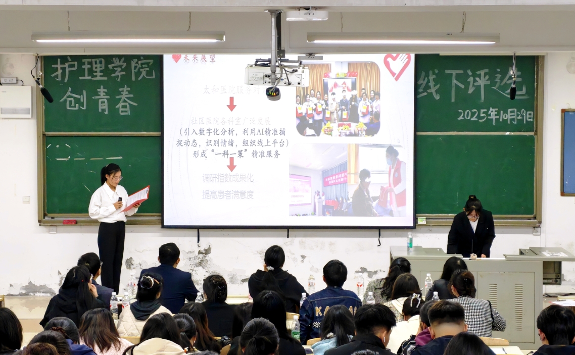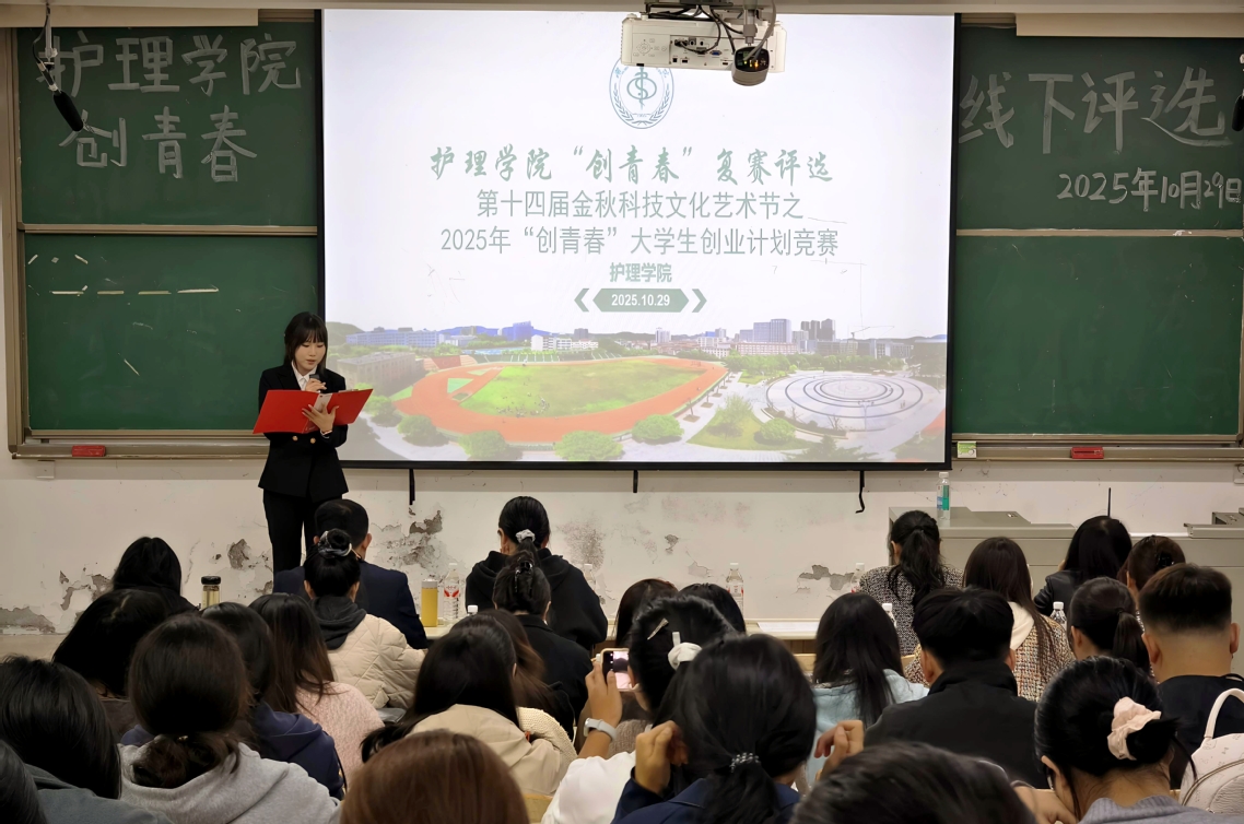 本网讯(通讯员 沈锐 杨清毅 袁尚灵)创新思潮涌动,青春梦想启航。10月29日下午,护理学院“创青春”创业竞赛院级选拔赛在八号楼8102教室火热开赛。本次活动以“挖掘创新思维、点燃创业热情”为主题,旨在为学子搭建实战平台,浓厚校园科创氛围。比赛特别邀请学院领导、创新创业专家、辅导员老师担任评委。