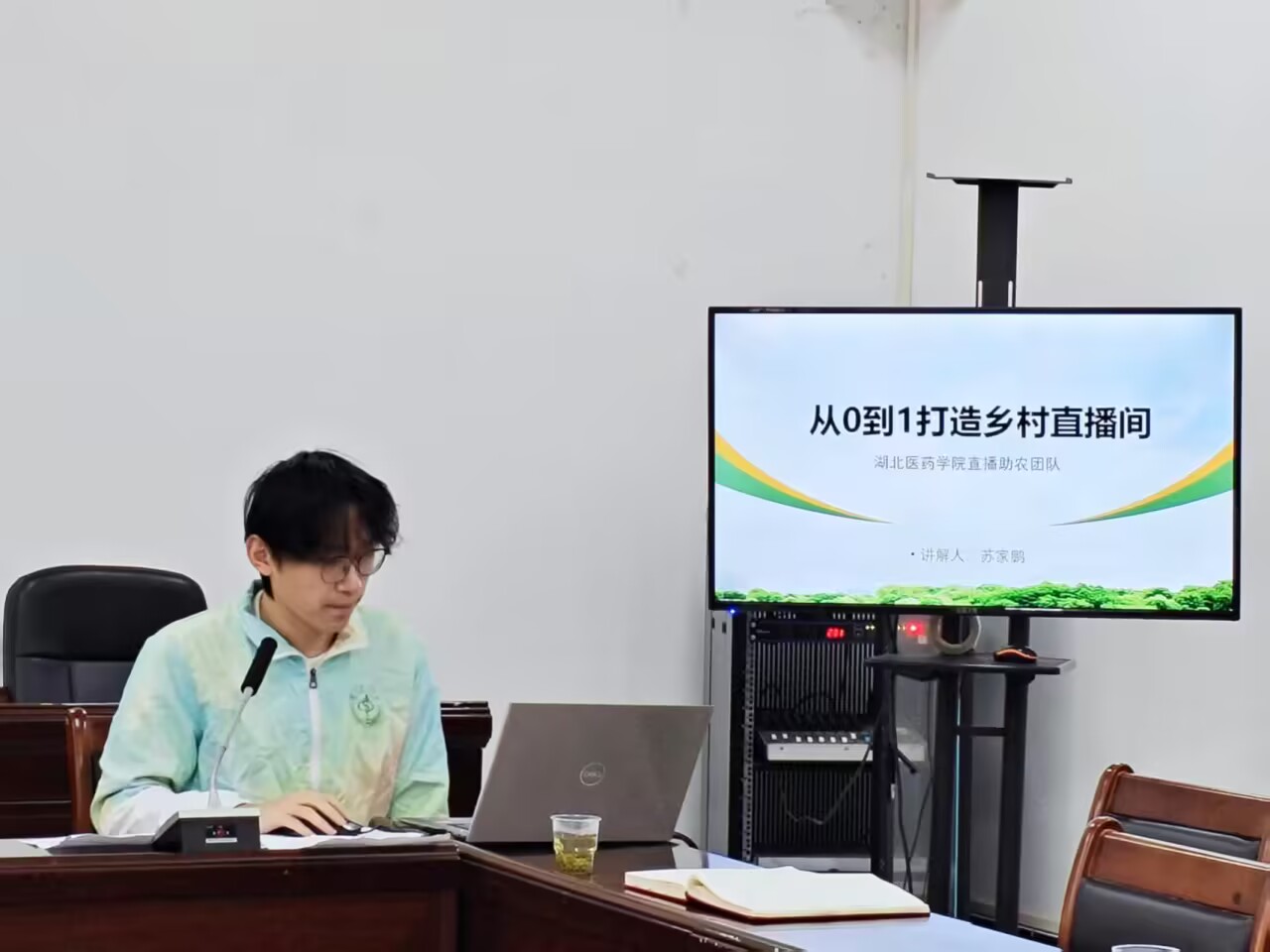 培训中,服务队指导老师谭聪聪及骨干队员苏家鹏等同学,围绕“账号定位 选品逻辑 脚本撰写”主题,结合真实直播案例,深入讲解如何将茅塔乡特色农产品打造成爆款。理论讲解后,服务队将课堂移至“来回喜院”,搭建起“手机 补光灯 三脚架”的简易直播间,协助参训干部完成直播全流程演练,切实提升实操能力。康家村村干部杨凤梅与岩屋村村干部李芳搭档上阵,在助播提示下顺利完成“暖场—讲品—互动”全流程。