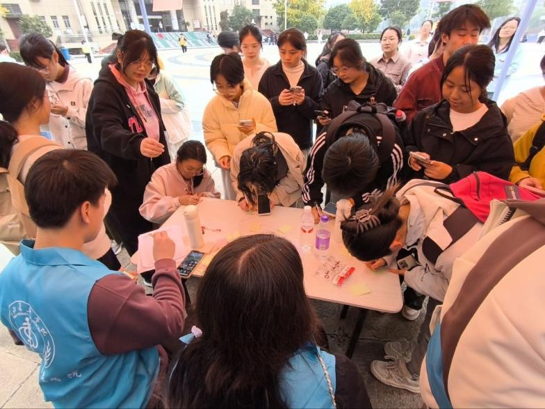10月28日,“医护相伴,青春不‘毒’行”志愿服务队在文明广场举办“重阳防毒进校园”主题活动,吸引众多同学参与。活动设置线上毒品认知分享、重阳护老防毒倡议及线下留言互动等环节,志愿者们结合专业知识,重点讲解“毒养生丸”“毒茶叶”等针对老年人的伪装毒品识别方法,引导同学们共同为家中长辈筑牢防毒安全屏障。