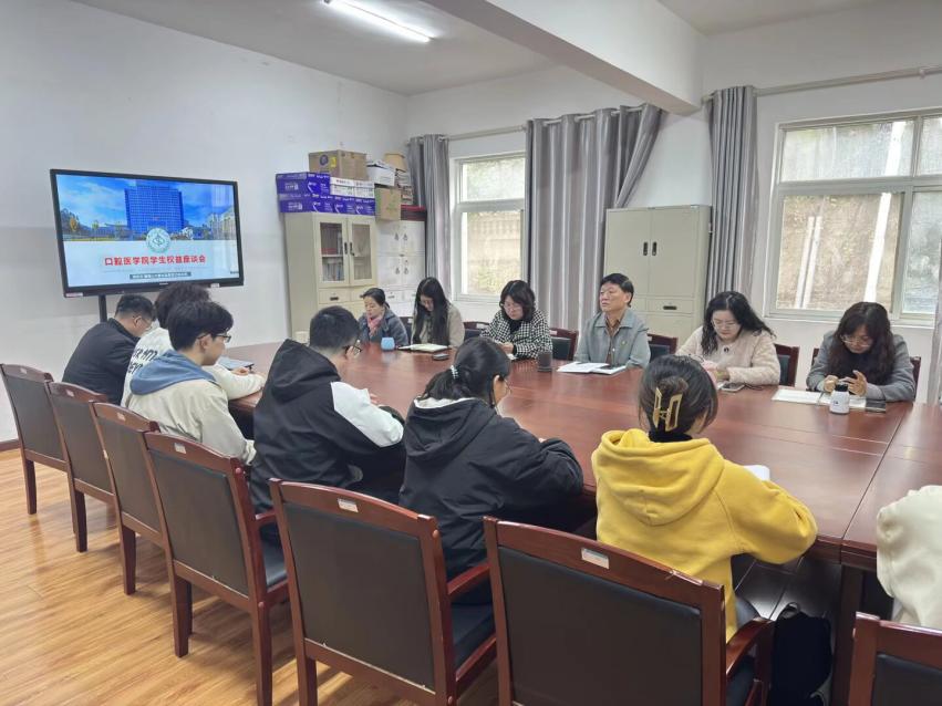本网讯(通讯员 梅显运)11月12日上午,口腔医学院在二楼会议室举行学生权益座谈会,学院党委书记秦赤子、副书记吴卉、三办负责人和辅导员老师以及院级学生组织骨干、各班学生代表参会,会议由梅显运主持。