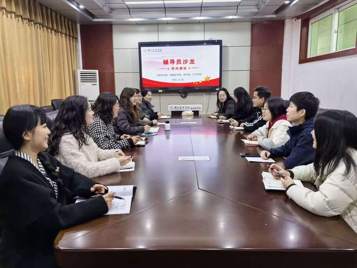 本网讯(通讯员 王艳红)为深入贯彻落实立德树人根本任务,扎实推进我校学风建设,11月20日上午,药学院、基础医学院、口腔医学院、公共卫生与健康学院联合举办的“协同赋能·学风建设”辅导员沙龙在基础医学院一楼会议室举行。四个学院的学工干部齐聚一堂,围绕新时代学风建设的难点与创新路径展开深入交流。