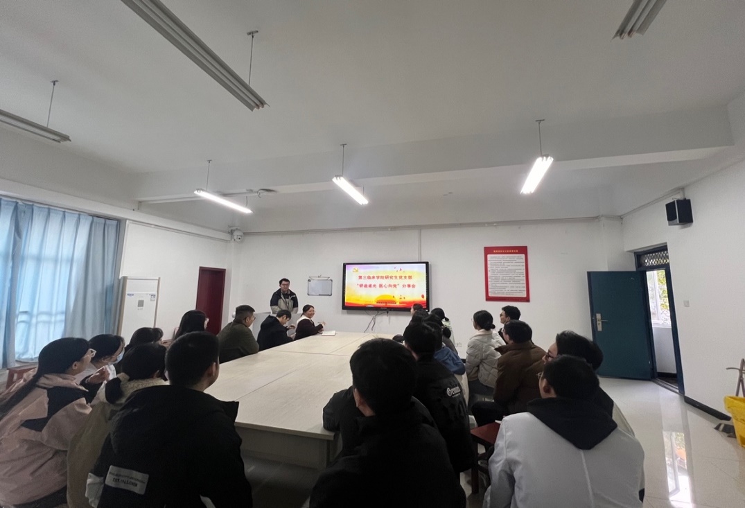 本网讯(通讯员 崔子恒 赵晓燕)10月23日下午,第三临床学院研究生党支部在教学楼201室开展“研途逐光 医心向党”分享会,支部所有成员参加活动,活动由学院副书记、研究生党支部书记李芹主持。